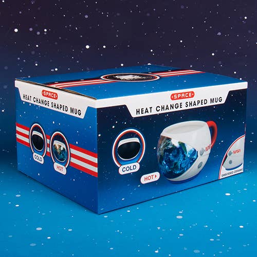 With opposing NASA artwork on each side, this mug is designed to resemble a classic astronaut’s helmet, using embossed ceramic to add a 3D feature. Sit back and relax as this mug reveals a fascinating image when hot liquid is added.