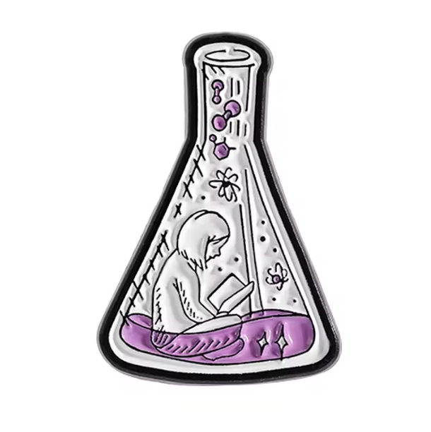 Woman Reading in Erlenmeyer Flask Enamel Pin